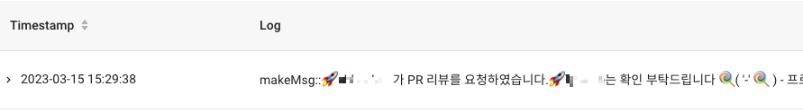 이러면 로그가 한줄로 보일 줄 알았는데.. 줄바꿈마다 표로 따로 나와서 매우 불편했다.